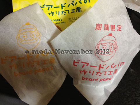 シュークリームをいただきました。 シュークリーム専門店 ビアードパパ 大阪市城東区新喜多1丁目2番31号 JR京橋駅東西線改札内(株式会社 麦の穂) 阪急西宮北口、ではなく、JR京橋駅の構内で買ったんですって! 何でわざわざ…と思ったけど、朝イチ番のホームで漂う甘い香り…そりゃ買っちゃうよなぁ。 食べるの久しぶりなので嬉しかったんですけどね。 左がカスタード、右が11月中の限定商品「焼きいもシュー」。 終了まであとわずか、ギリギリゲットできました。 ちゃーんと包装に「期間限定」と書かれてありますね。 香りは全くわからなかったけど、一口食べると「ほくほくのお芋の味」が! 鳴門金時のペーストとカスタードのミックスだから、ちょこちょこお芋の皮も見えます。なんか得した気分。 ビアードパパのシュークリームには「パイ生地」と「クッキー生地」がありますが、今回はどちらもクッキー生地。他とは違うカリカリの食感。 やっぱり焼きたての良い香りには誘われてみるべき!美味しさ再発見の ビアードパパでした。 PR