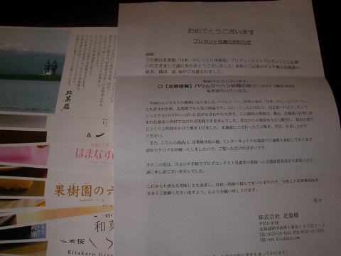 週末のお話。 家族から「変わった名前の人から届け物が来てるよー」と声がかかりました。 変わった名前・・・中国からか、ベトナムからか、はたまたペルーからか・・・ 色々なお友達の顔と名前が浮かびつつ、誕生日はまだだしなぁと疑問に思いながら荷物を見てみると・・・ ちょちょちょっと 「日本一しっとりしたバウムクーヘン」でおなじみ、北海道の「北菓楼(きたかろう)」さんからじゃないですか!株式会社 北菓楼 北海道砂川市西1条北19丁目2番1号 しかし、通販した覚えもなく、届け人の住所も「北菓楼」…どういうこと?! そういえば、9月の終わりに、北菓楼さんとこの「日本一のしっとり体験談」ブログコンテストに 応募していたのでした ![]() ちょうどコンテストの時期、西宮阪急「秋の北海道物産大会」でバウムクーヘン「妖精の森」を購入しまして。タイミングも良いし食べた感想を読んでいただきたいなぁと考えたのです ![]() 西宮阪急「秋の北海道物産大会」の記事 同封のお手紙を読むと、なんとなんとコンテストで「北菓楼賞」に選んでいただきました ありがとうございます![]() ![]() 読んでいただいただけでも嬉しいのに![]() 「日本一のしっとり体験談」ブログコンテスト結果発表 9ブログ中9番目の記載と侮るなかれ、北菓楼賞は「バウムクーヘン妖精の森 高さ4cmタイプ」1個ですよ ![]() 当然のことながら、しっとり感がたまりません いや、今回の場合、美味しさ倍増![]() ![]() ![]() 味わいだけでなく、包装もしっとりした感じのバウムクーヘンです。年末年始の贈り物としてもバッチリ使えそうですね。人気商品ですし、発送スケジュールには注意しましょ! 年末年始の北菓楼通販センター発送スケジュール 今回は本当にありがとうございます!ごちそうさまでした ![]() ![]() PR