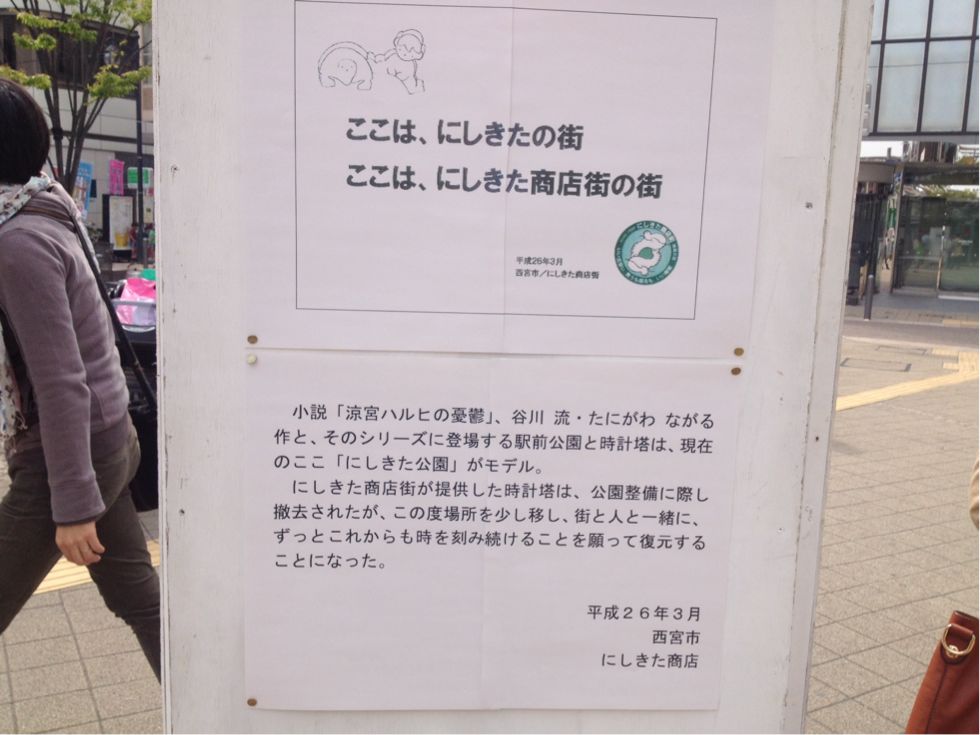 涼宮ハルヒの憂鬱で、待ち合わせ場所のモチーフの一つ、「にしきた公園」。2009年に改築されたので、ハルヒファンは寂しい思いをしていたと思います。 除幕式は13時半から。近所のお子さん達が集まり、ちょっとした露店も出てました。 にしきた商店街の歌を何曲か歌って…その時点で暑くて帰ってしまいました。 除幕式は15時くらいとのことだったのですが、実は既に時計塔は立っていたので… はい、既に撮影済み。 除幕式は楽しかったのかなあ… まだまだハルヒ巡行をされてる方がいますもんね。一つでもハルヒの面影が増えると嬉しいだろうなあ。 もちろん、古き良き西宮北口の象徴としても、復活を嬉しく思います。 PR
