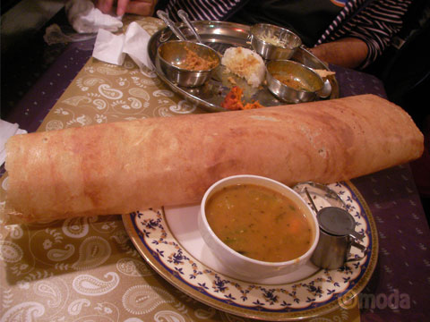先日の「インディア・メーラー2011」で食べた南インド料理「(マサラ・)ドーサ」の美味しさが忘れられません! いただいたのが東京のお店だったので、近場で南インド料理店ないかしら・・・と探したら、めっちゃ近くにありました ![]() このド派手な看板、よく見てたのになぁ ![]() 阪神西宮駅の北側、三菱UFJ銀行と公園に挟まれたマルシェビルに南インド料理が食べられるお店、発見です。 チャルテチャルテ西宮 兵庫県西宮市和上町1-6マルシェ B1 神戸を中心に展開している「チャルテチャルテ」の支店。2010年1月オープン。甲子園にも支店があるようです。 土日も通常のランチメニューがいただけます。コースは5つで、そのうち2つはナン食べ放題! で、選んだのはDコース(ナン食べ放題)と、当然Cコースの「マサラ・ドーサセット」。どちらも1050円也。 Dコースはカレー2種類とサラダ、チキンティッカ1個、ライスとパパド(papadamて書いてありましたが、自分の言いやすい言い方で失礼します)のセット。 なかなかのボリュームのナンが食べ放題!2枚が限界でした ![]() そして、Cコースのマサラ・ドーサセット登場! マサラドーサ(クレープ状の生地の中にはカレー風味のマッシュポテト)、サンバル(野菜カレー)、ハーブチャットニーとココナッツチャットニー(薬味的なもの。チャツネ)がセットになっています。 カレーの辛さは基本(5%)、辛いのが好きな人用(20%)があり、それより辛いのはパーセンテージで指定できるそうです。 初めてだったので20%にしたのですが…次はもっと辛くしようかな ![]() とにかく、近所でドーサを食べられることがわかったし、2回目のドーサもやっぱり美味しかったし ![]() 外出の必要性が最近やっとわかりかけてきたヒキコモリさんです ![]() PR