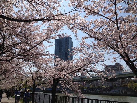 昨日の雨でどれくらい散ったか確認してませんが、西宮・夙川の桜はキレイですよ!と豪語してたら、「大きい川べりの、しかも都会の桜も見るべし!」と誘われ、行ってきました、お花見@大阪。 阪急・谷町線の天神橋筋六丁目駅から歩いて10分足らず。都島大橋から西を眺める、の図。 大川の護岸工事もしていて、ちょっと無粋な箇所もありますが、この桜並木が何キロも続いているそう。高層ビルと高速道路と桜の構図は圧巻です。 都島大橋から東を望む、の図。 川が広いからか桜の木も枝伸ばし放題! 橋の下にある自転車道へ行ってみました。桜のアーチが遠くまで続いてます。 風もなくいい天気。桜吹雪とまではいきませんが、さすがに散り始めてますねぇ。 ベンチでお弁当花見中の人、自転車や徒歩で桜を愛でている人、皆ニコニコ、のんびりと時間をすごしてました。 しかしまあ、こういう風景は夙川にはありませんわな。 大阪で(ちゃんとした)お花見は久しぶり。なかなか気持ちよかった! 週末に越水浄水場~六軒という、いつものコースに行ったら、2012年のお花見は終わりかなぁ。 忘れないうちにGoogleMapにも記しておきます。 PR