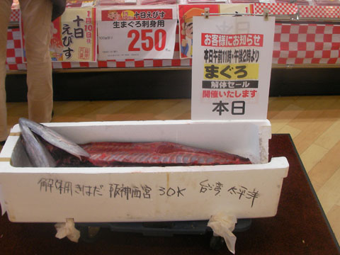 雪の舞い散る10日の午前中、えべっさんに行ってきました ![]() 行きの人混みはマシでしたが、帰りは一気に人も増え 早めに行ってよかった![]() 例年通り、逆さ門松がお出迎え ![]() えびす宮総本社 西宮神社 兵庫県西宮市社家町1-17 今年は本殿復興50年ということで、拝殿や境内の整備事業が始まっています。 「福男選び」のニュースで散々いわれていたように(コースが変わったとかなんとか)、新しい祈祷殿の建設や神池の整備などの記念事業があるようで、益々えべっさんの福が増しそうですね。 我が家は、えびす詣の後、小松さんとこの名物・えびす焼きを食べ、谷矢製餡さんの金鍔やら、あちこちの酒まんじゅうやらを買い、いつも通り十日えびすを楽しみました。 いつもと少し違うのは、サカエ 阪神西宮店で鯛を一匹買ってきたことかな。 マグロの解体ショーもしていたようですが、真鯛を買ってきて自宅で捌き、お刺身とアラ炊きでいただきました ![]() 今年も商売繁盛!でいきたいものですねぇ。