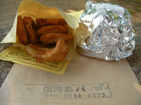 ![]() なんか晴れの日を楽しみたいなぁと「美味しいものをアウトドアで食べる 」という緊急企画を発動しました![]() で、思いついたのが、淡路島バーガー!サイドメニューのオニオンリングもチョイス、近くのコンビニで飲み物を買って、ぽかぽか陽気の下でいただきます! 西宮 淡路島バーガー 淡路屋 兵庫県西宮市池田町4-1