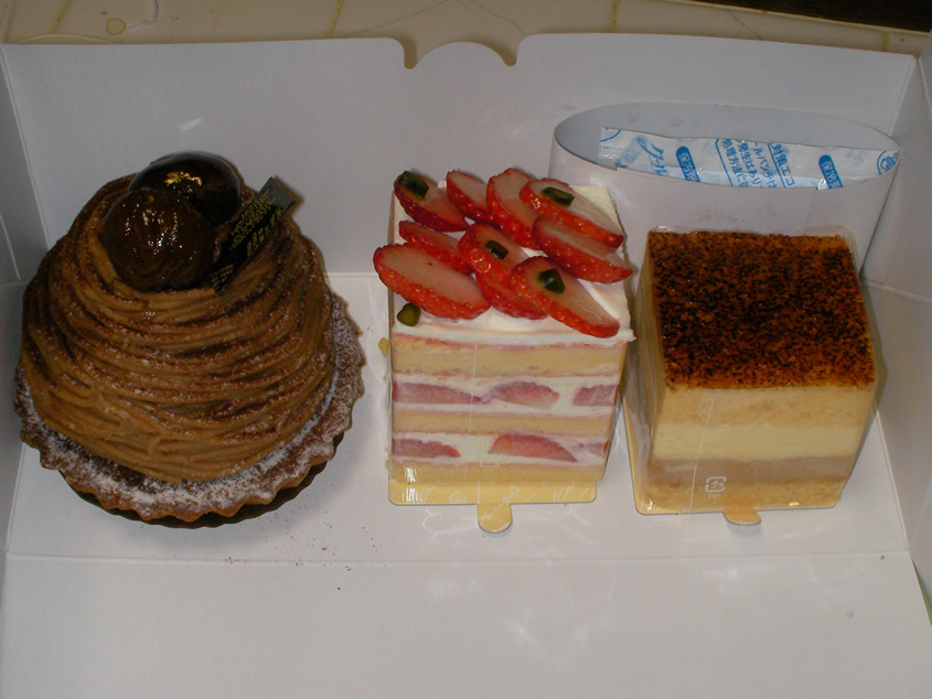西宮市内でのみ行動している私にとっては遠い町・御影の超有名店 「御影高杉」のケーキをチョイスしました。 サンマルクのチョコ&生クリーム&キャラメリゼ&アーモンド?の 絶妙なバランス最高! しかし、並べると大きさがよくわかんないですね。 右からサンマルク、ショートケーキ、モンブランです。 PR